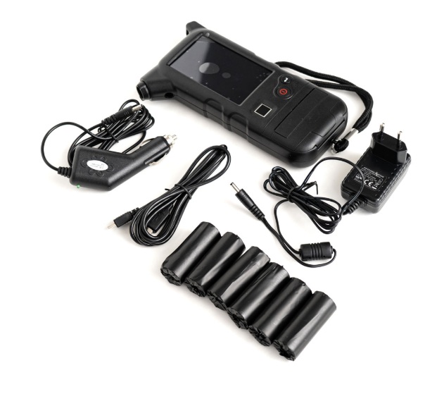 Съдържание на пакетаАлкотестер, мундщуци (100 бр.), мундщуци с възвратен клапан (50 бр.), чанта за носене, компютърен кабел, адаптери за зареждане за 220V и 12V, каишка за китка, документация, хартия за принтер (5 ролки), ръководство за употреба, паспорт